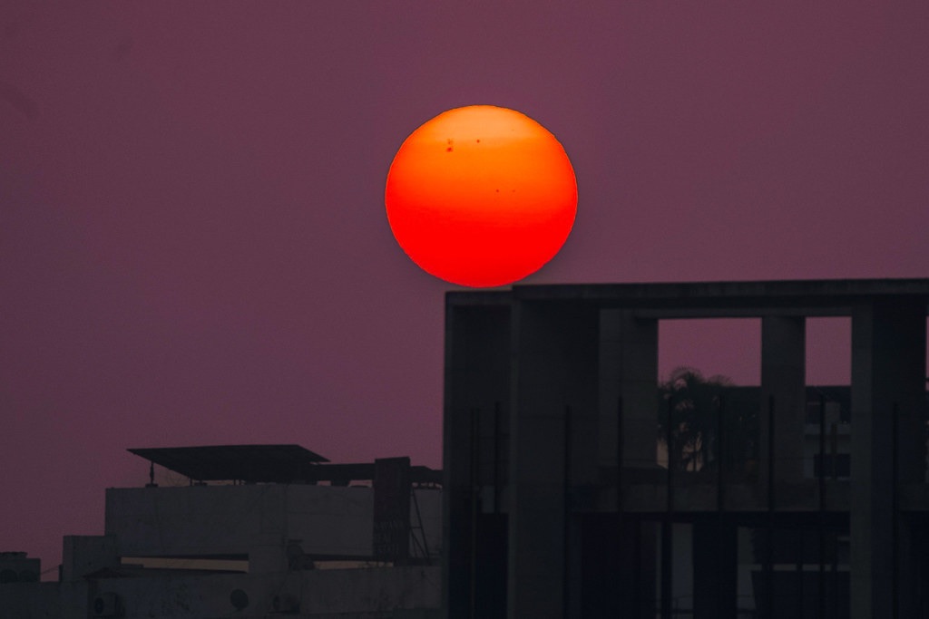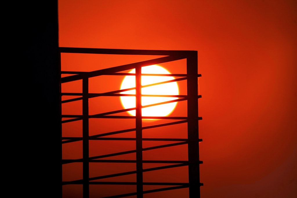 “In the sinking fire of the sun, the city and its builders take shape— shadow and light stitch together the day’s final story.”