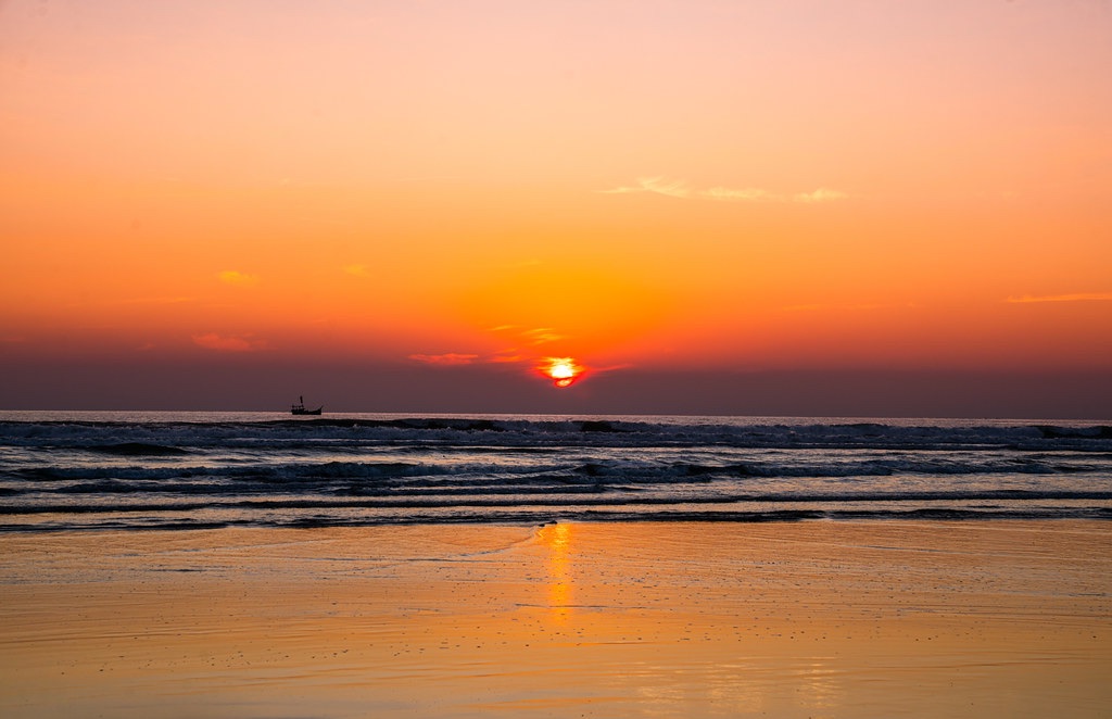 Sunset bleeds along the trembling line of sea, A hush descends where light begins to flee. Shadows stretch like thoughts we never said, And day slips quietly where dreams have bled.